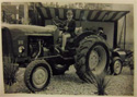Fotografía de época de un niño subido a un tractor John deere 515 en una exposición de maquinaria agrícola